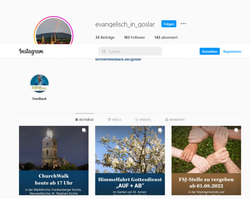Impulse und Informationen über social media. Wir freuen uns über follower: evangelisch_in_goslar